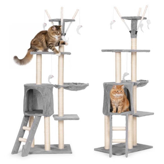 Drapak Petsi to wielofunkcyjne centrum aktywności, które zaspokaja wszystkie naturalne potrzeby kota - od drapania, przez wspinaczkę, po odpoczynek. Dzięki przemyślanej konstrukcji z pięcioma poziomami kot może bezpiecznie rozładować energię, ostrzyć pazury na sizalowych słupkach czy obserwować otoczenie z wysokich platform. Wbudowany domek wraz z miękkim legowiskiem tworzą idealne miejsce do drzemki i wyciszenia. Drapak doskonale odnajdzie się w każdym mieszkaniu, oferując pupilowi prywatną strefę relaksu, a także codziennej aktywności.