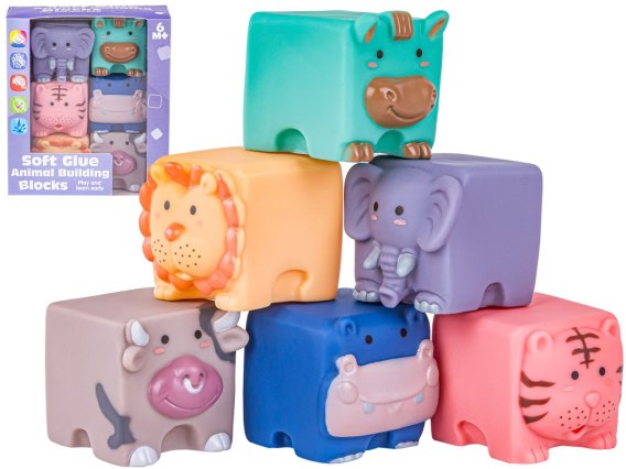 Niezwykle miękkie klocki zaciekawią każde dziecko. Klocki są gumowe i miłe w dotyku. Każdy z klocków posiada wizerunek innego, wesołego zwierzątka. Są one odporne na wodę, dzięki czemu idealnie nadają się do zabaw podczas kąpieli. Doskonale sprawdzą się również jako gryzak. W razie potrzeby klocki można bezpiecznie wyparzać w gorącej wodzie.