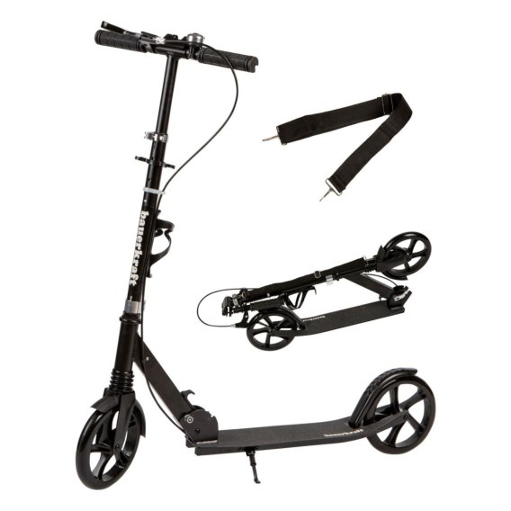 Praktyczny system składania kierownicy - umożliwia szybkie złożenie hulajnogi do kompaktowych rozmiarów. Stabilne zawiasy i zabezpieczenia zwiększają bezpieczeństwo.