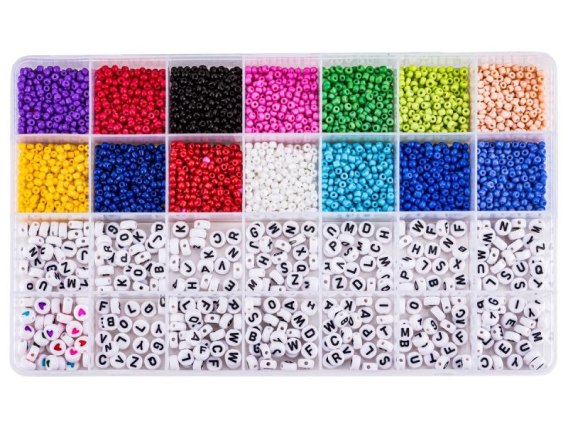 Sporo koralików posiada wybite literki - dzięki temu ozdoby można spersonalizować lub tworzyć ciekawe napisy.