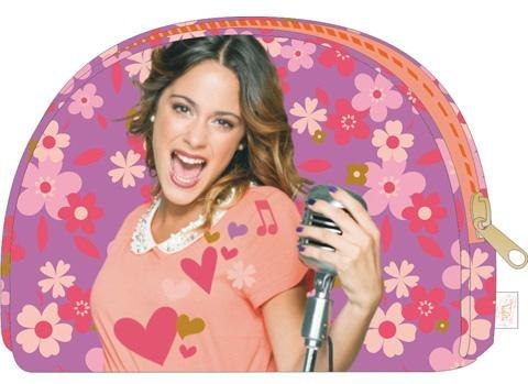 Dziewczęca kosmetyczka dla małej modnisi w kolorze fioletowym. Wykonana z połyskującego materiału ze zdjęciem głównej bohaterki z serialu "Violetta". Na zamku zawieszka z serduszkiem.