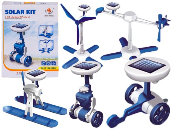 Solar Kit 6 to aż sześć wyjątkowych zabawek edukacyjnych w jednym. Ich serce stanowi panel solarny, napędzający silniczek i wprawiający zabawkę w ruch.
