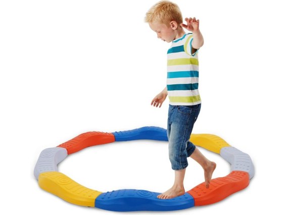 Elementy toru posiadają różne kolory, co zachęca do zabawy oraz stymuluje Twoje dziecko. Skacząc i chodząc po kamieniach dzieci uczą się oceniać odległość i wysokość, a także rozwijają koordynację ruchową, równowagę i poczucie przestrzeni.