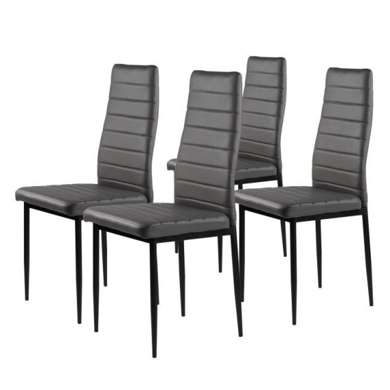 Zestaw 4 krzeseł do salonu jadalni z ekoskóry wyprofilowane oparcie szare