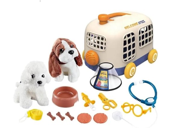 Zestaw Małego Weterynarza Transporter Dla Psa + Akcesoria Klatka Dla Zwierząt Weterynarz Doktor Pies Pluszak